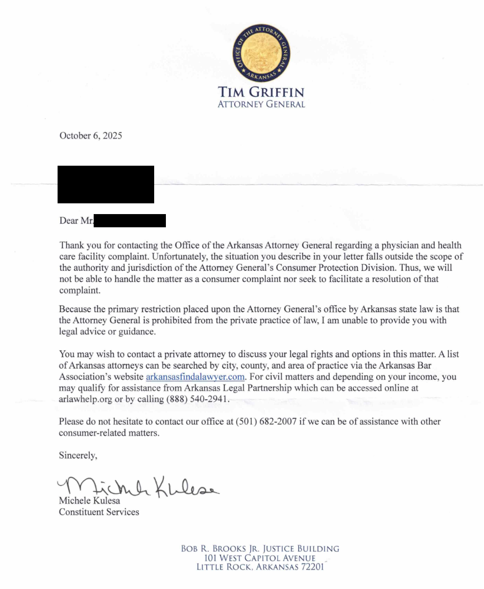 Letter from Arkansas medical board