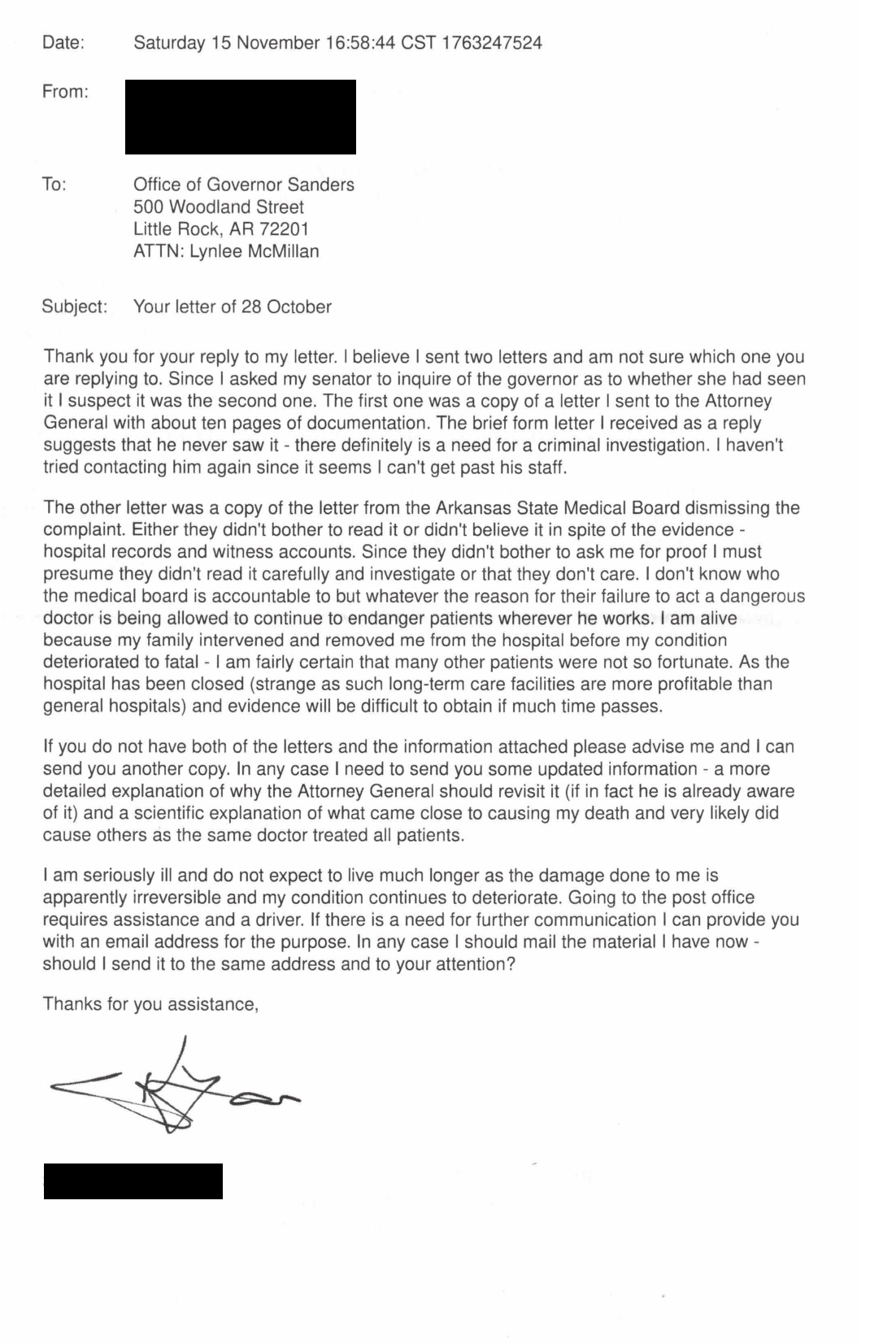 The other letter was a copy of the letter from the Arkansas State Medical Board dismissing the complaint. Either they didn't bother to read it or